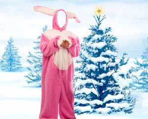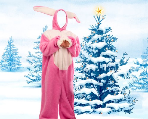 Костюм веселого, пушистого, розового зайки под елкой - Женский шаблон для фотошоп