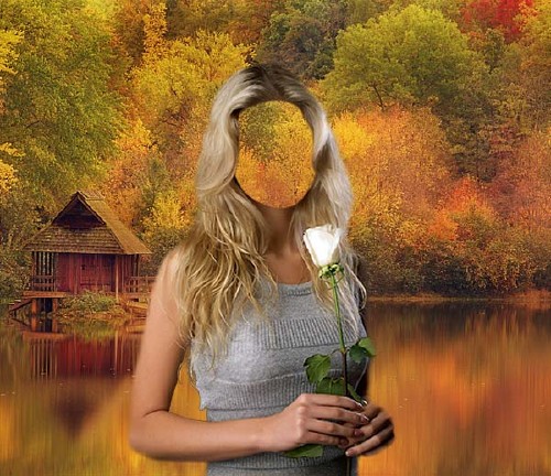 Женский фото шаблон - С цветком в руках